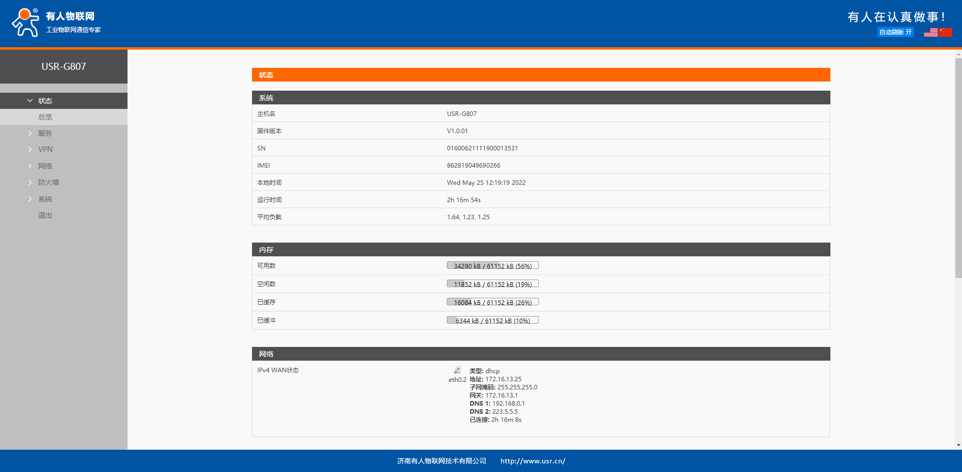 USR-G807 取出卡槽,放入 4G SIM 卡,正確安裝 4G 天線和 WiFi 天線,將 USR-G807的 LAN 口通過網(wǎng)線和電腦網(wǎng)口連接。 聯(lián)網(wǎng):在斷電狀態(tài)下插入 SIM 卡(卡槽正面對應“sim”絲印正方向)