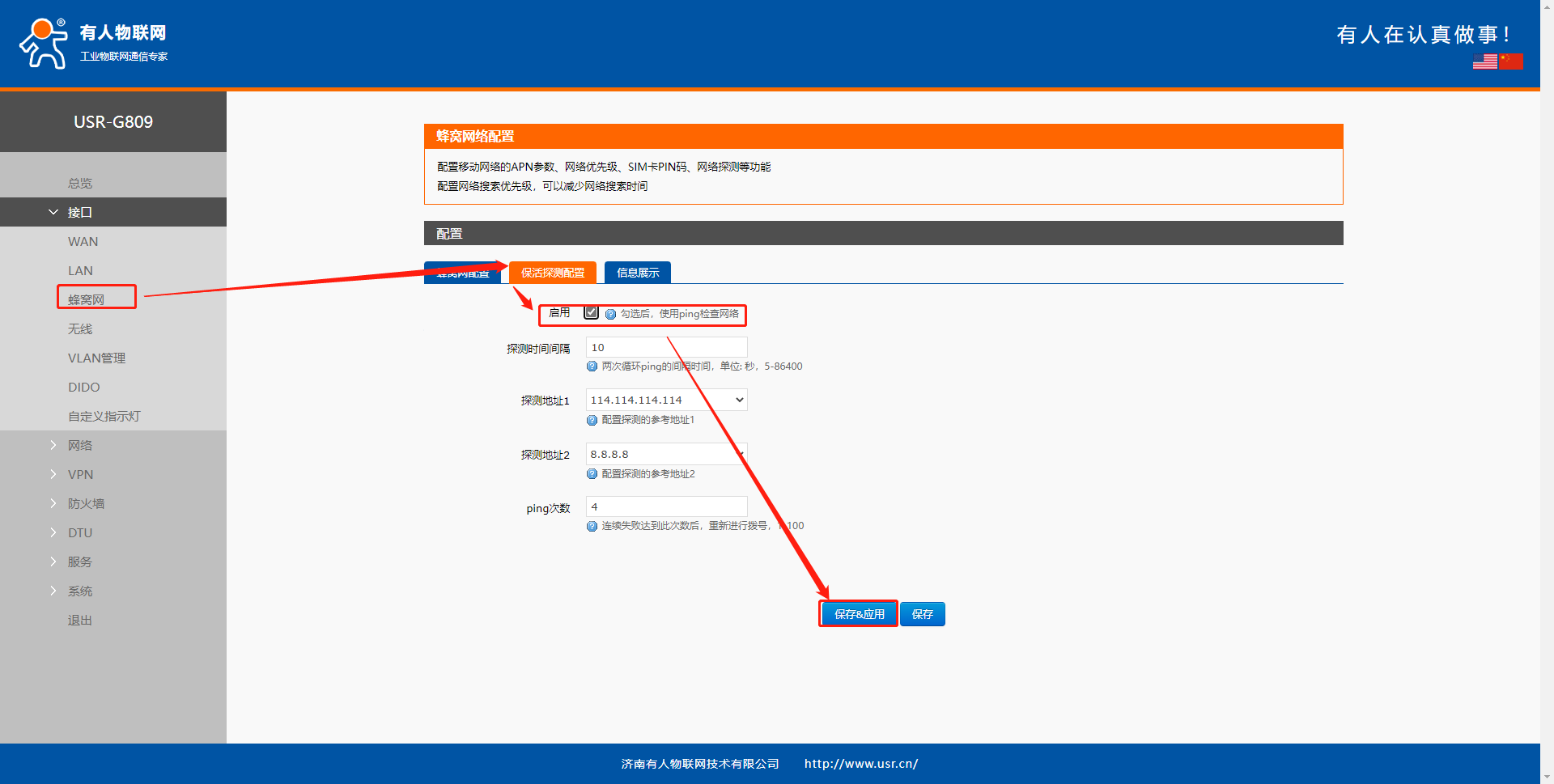 3、接口---蜂窩網--蜂窩網配置---保活探測配置---啟用
