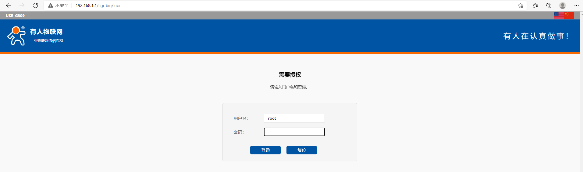 2、登錄內(nèi)置網(wǎng)頁:打開瀏覽器,輸入G809出廠默認(rèn)IP:192.168.1.1,用戶名以及密碼均為root