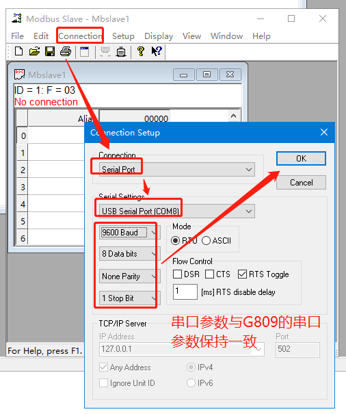 5. 波特率修改,G809串口出廠默認(rèn)是115200,N,8,1