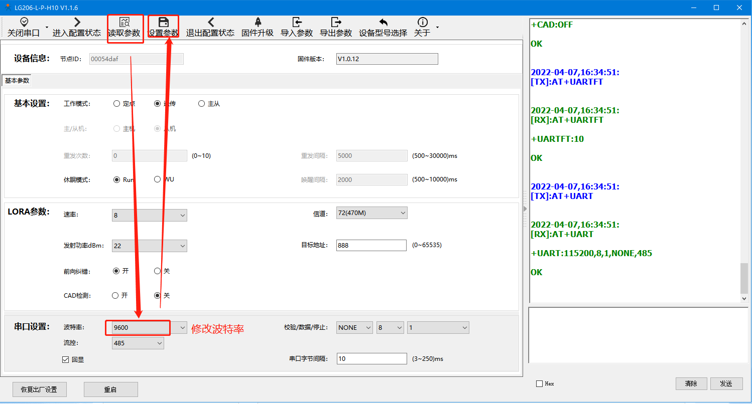 點擊讀取參數:可以獲取到lora模塊目前的參數設置