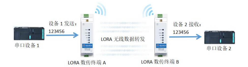 使用RS485串口線分別將LoRa數傳終端A、B接入串口設備(以PC機代替),給LoRa數傳終端裝上天線,然后給LoRa數傳終端上電。