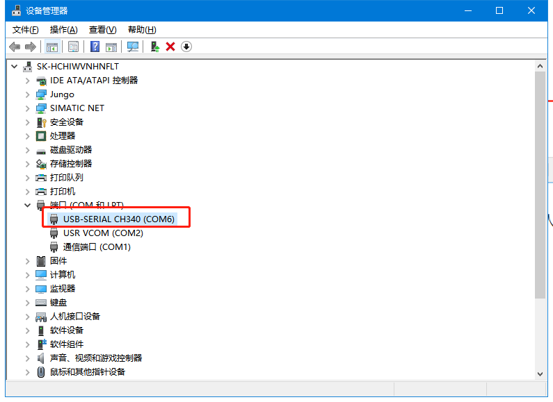 找到設備管理器,點擊端口,確認USB-RS485串口線的COM口號,有人測試電腦是COM6