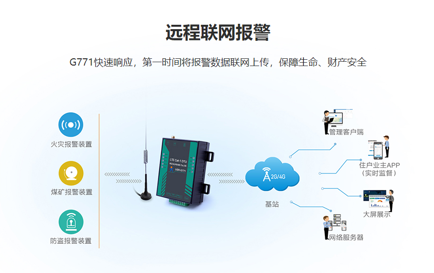 G771快速響應,第一時間將報警數據聯網上傳,保障生命、財產安全