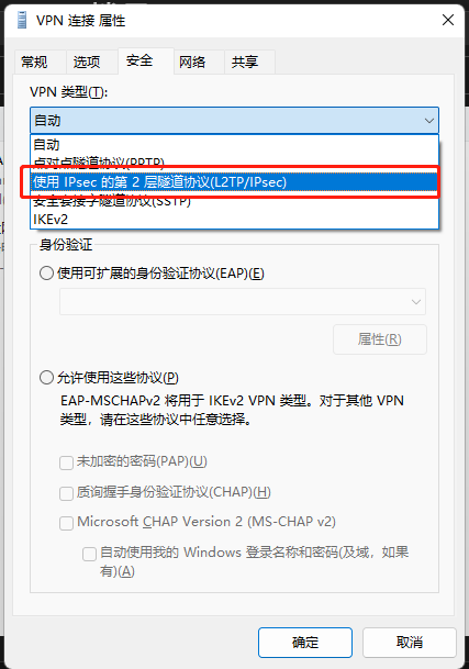 高級設置:身份驗證選擇MSCHAPV2 EAP PAPA CHAP。
