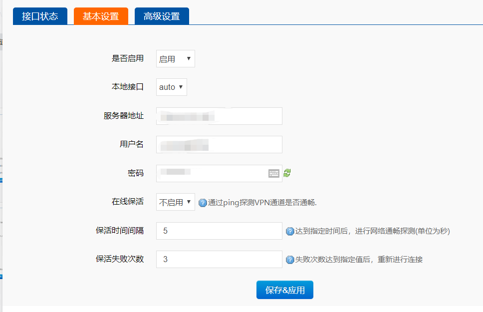 3、基本設置:服務器地址、用戶名、密碼與服務器端設置一致。