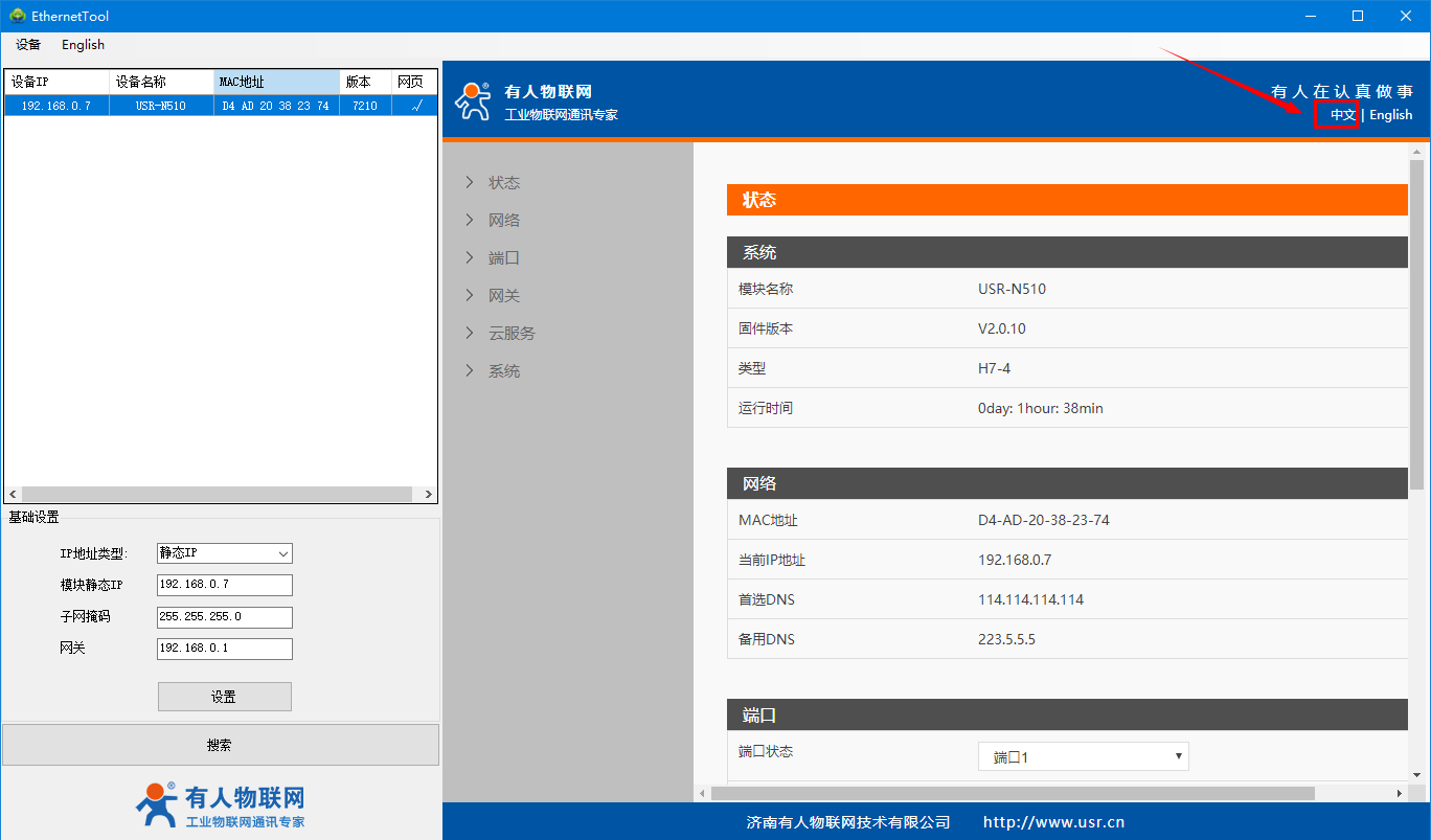 英文切換中文,設置軟件右上角點擊中文顯示,切換中文顯示。
