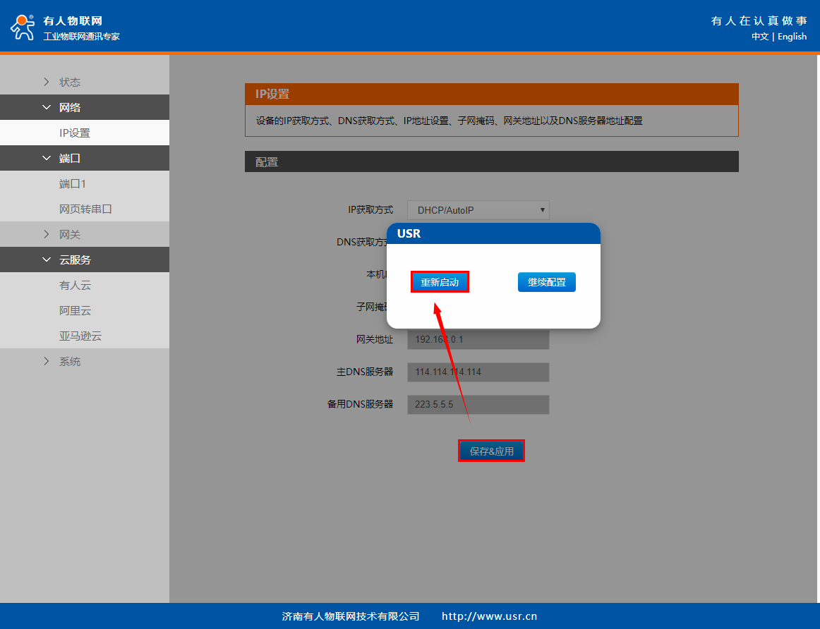 在“端口”>“端口1”界面中的“Socet”配置Socket A的工作模式為“Httpd Clinet”
