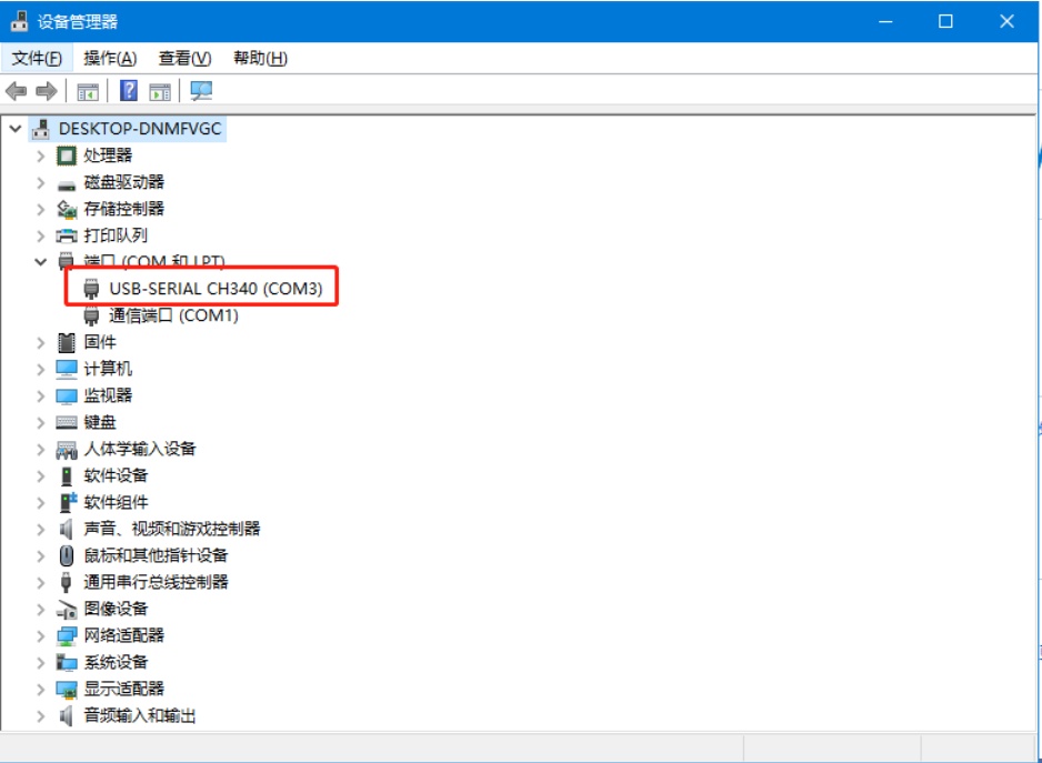 注:串口號可以在電腦的“設備管理器-端口”查看