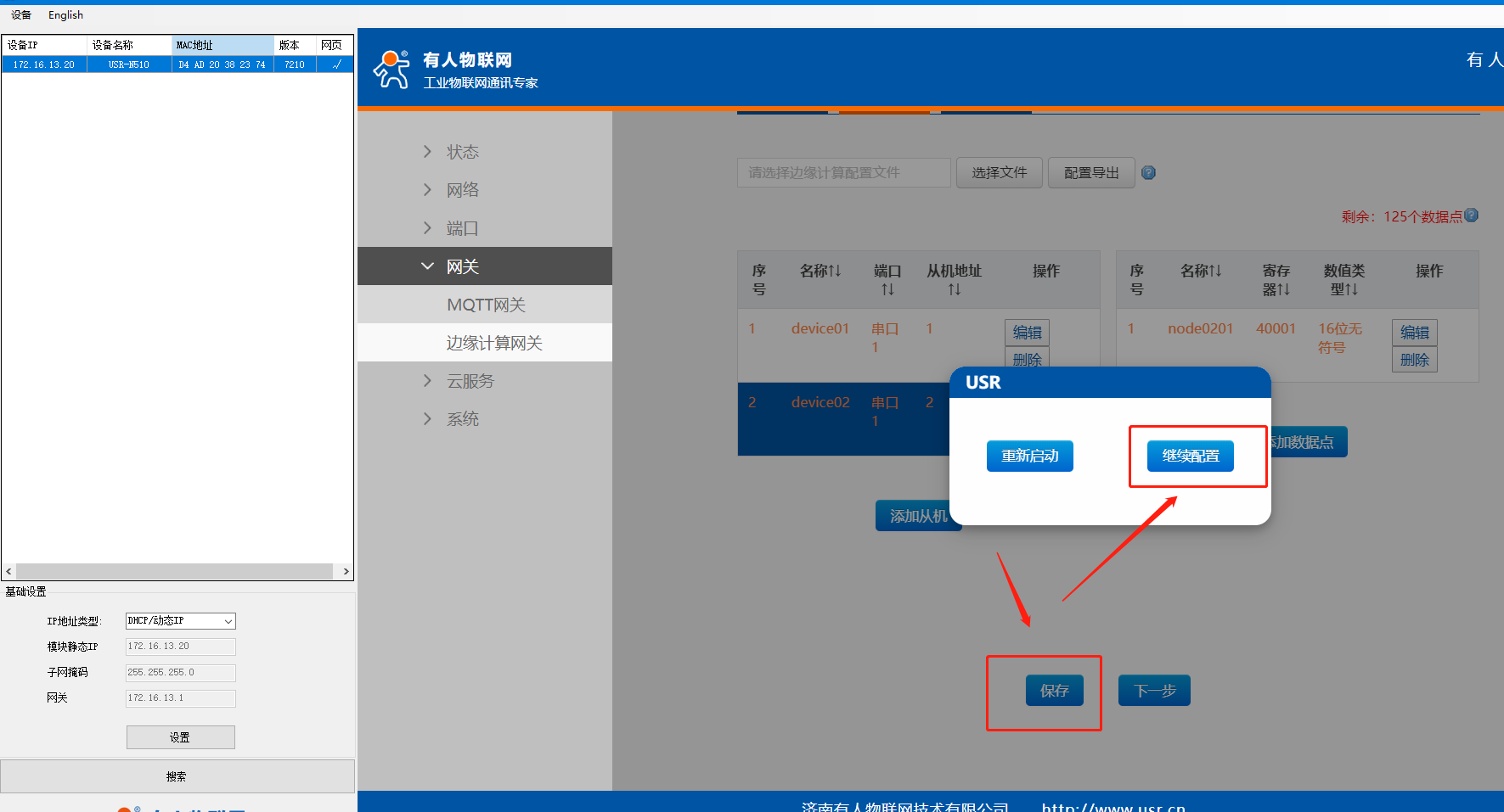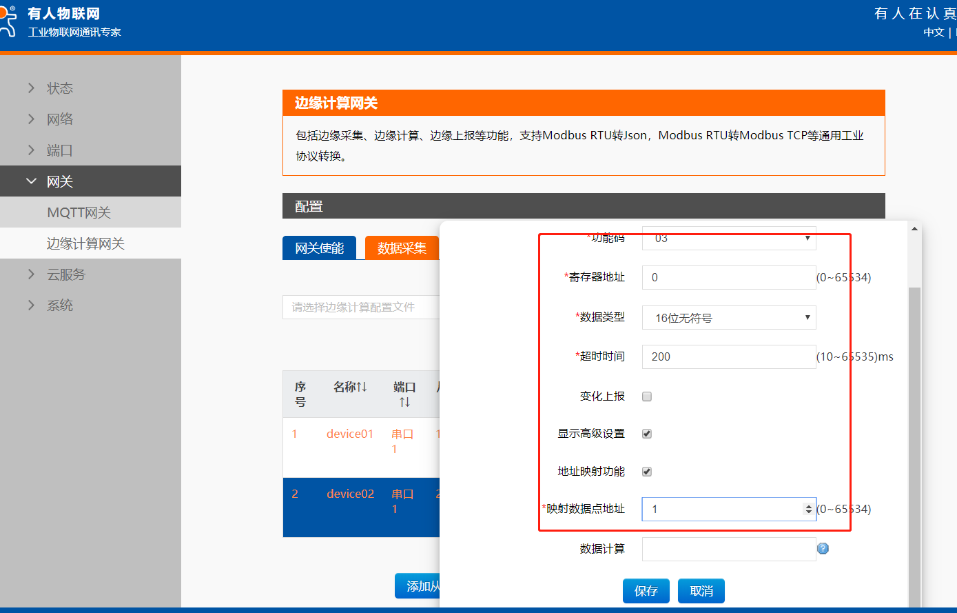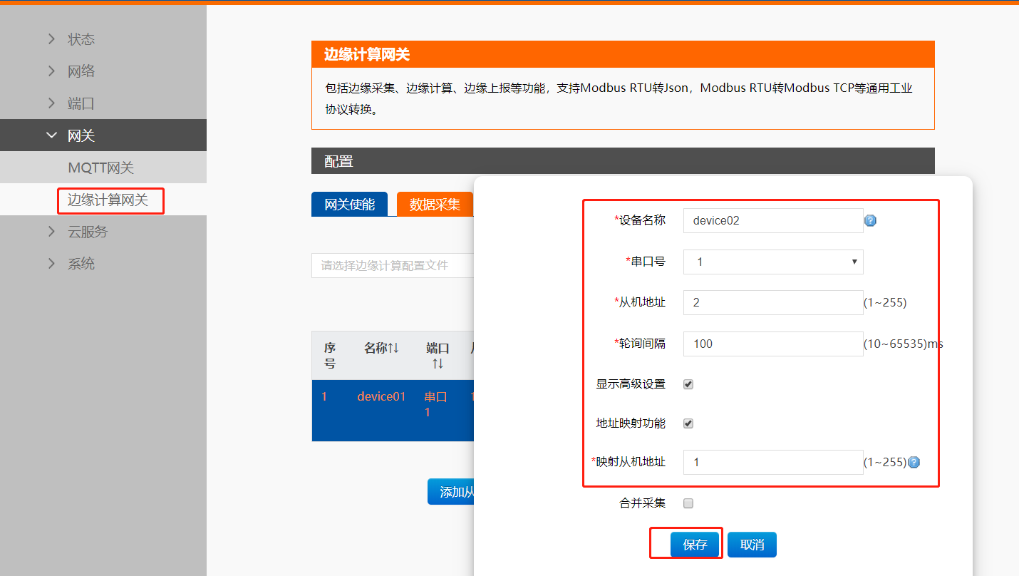 (1)進(jìn)入N510的內(nèi)置網(wǎng)頁,選擇網(wǎng)關(guān)下面的邊緣計(jì)算網(wǎng)關(guān)