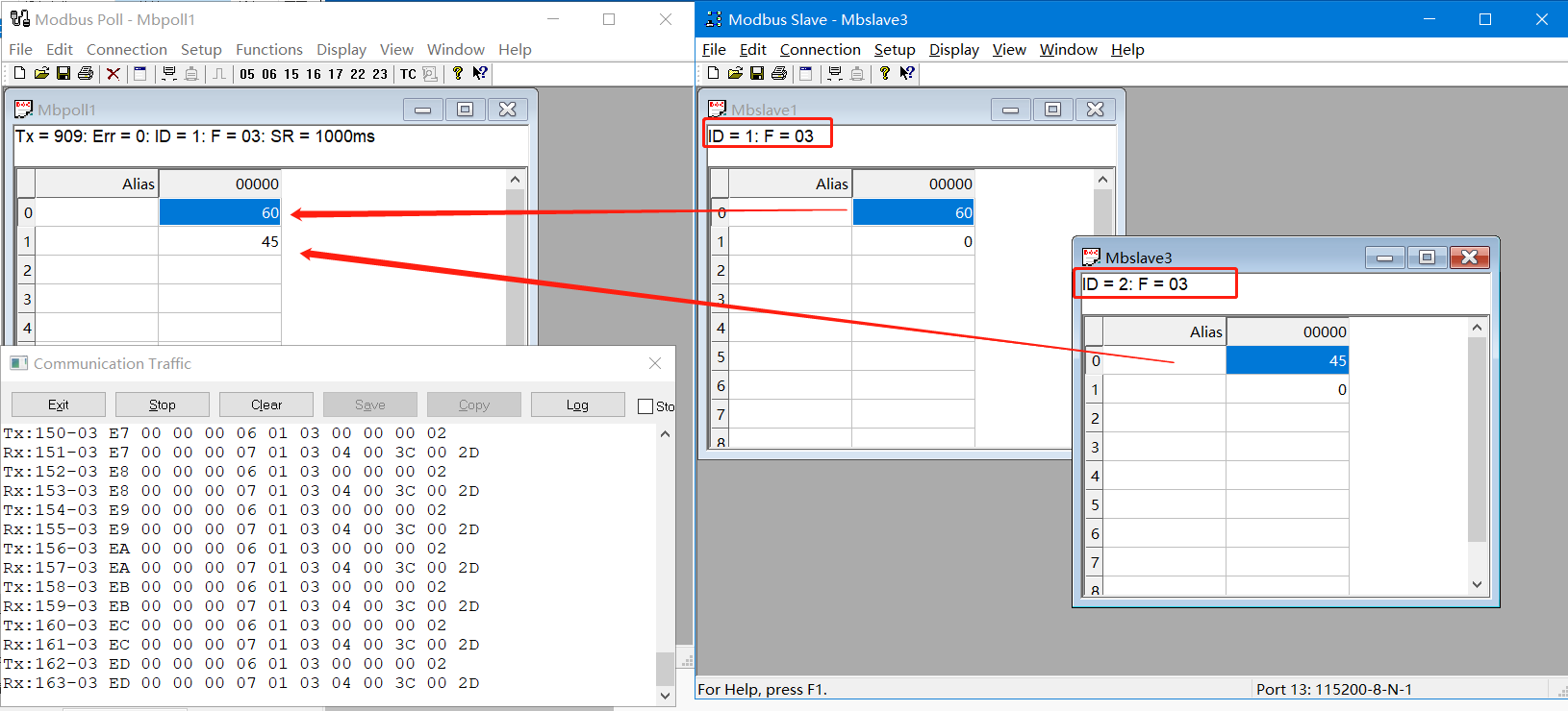 本例中配置串口號 1,從機(jī)地址 1,輪詢間隔 100