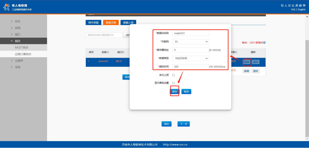 (7)點(diǎn)擊“保存”,保存該數(shù)據(jù)點(diǎn)配置