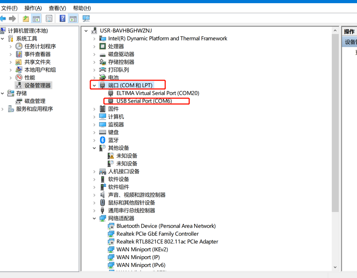 找到設(shè)備管理器,點(diǎn)擊端口,確認(rèn)USB-RS232串口線的COM口號,有人的測試電腦是COM6