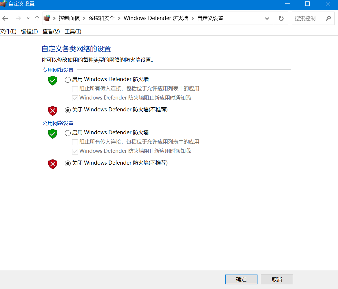 2)電腦關(guān)閉防火墻和殺毒軟件