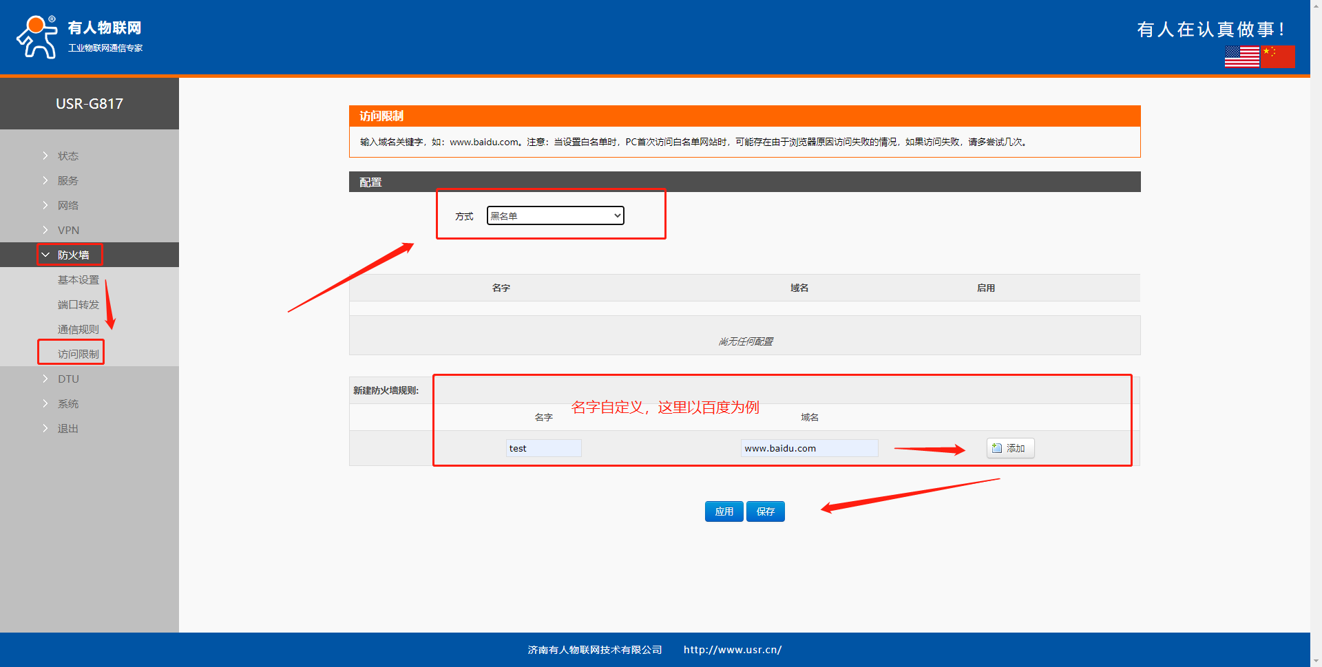USR-G817域名黑白名單設(shè)置