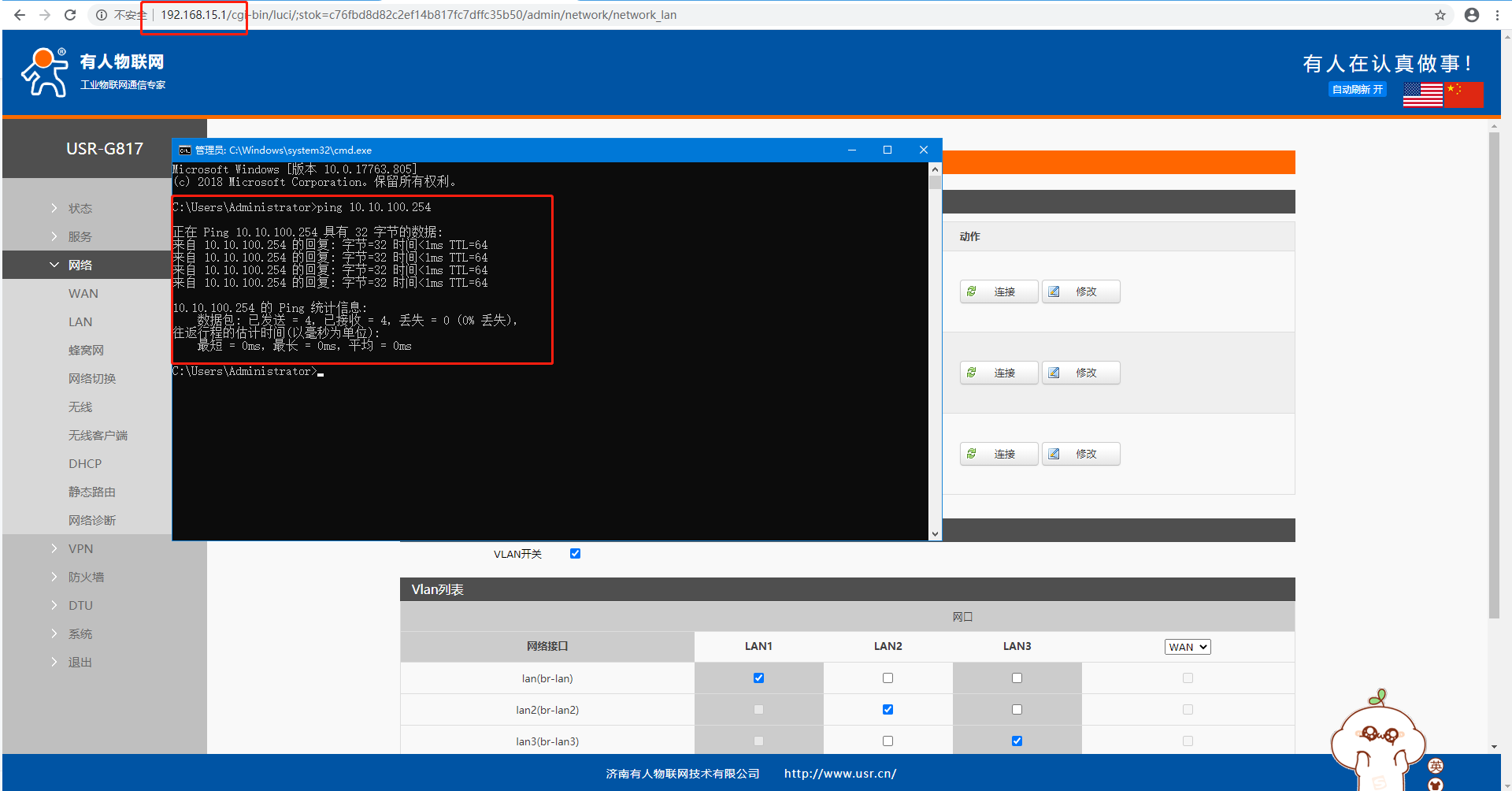 1、進入G817內置網頁,進入網絡---LAN--使能VLAN,勾選上則開啟此功能