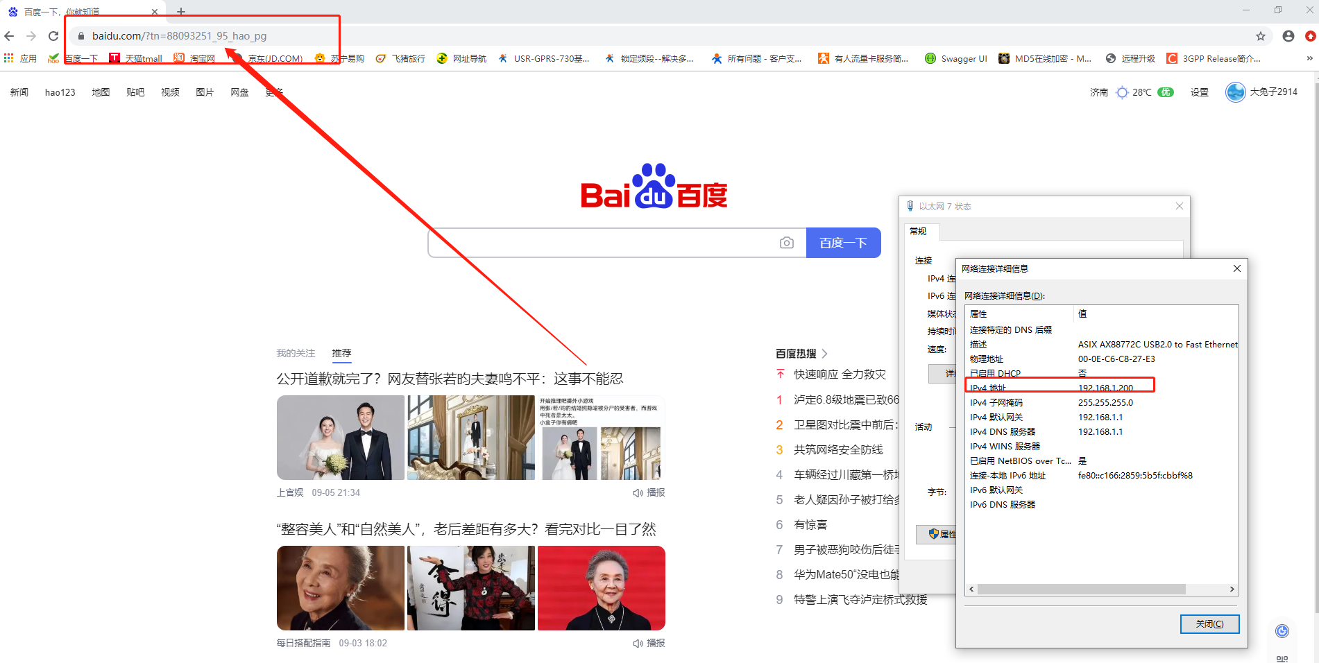 3.打開瀏覽器(不要用360瀏覽器),在地址欄輸入電腦獲取到的網關,通過網關登錄內置網頁界面,出廠默認網關為192.168.1.1、密碼為admin