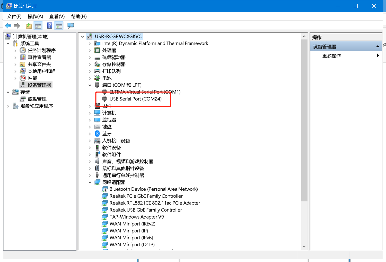 4、在電腦的設備管理器中查看端口信息,確定ED2模塊對應的串口號。