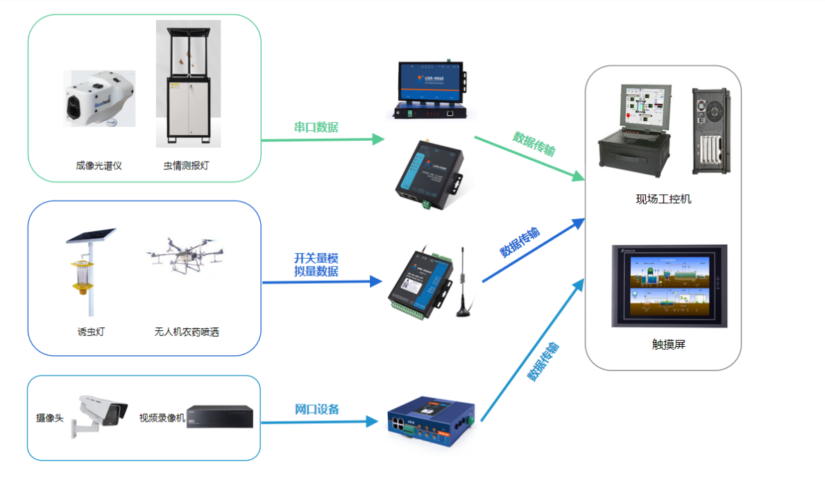 標準串口232、485、422、CAN,如成像光譜儀、自動蟲情測報燈等;