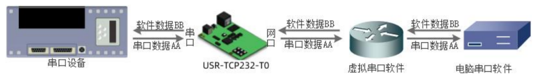 通過使用配套軟件 VCOM(虛擬串口),接收指定虛擬串口的數據,然后把該數據以網絡數據的形式發送出去,從而解決 PC 端軟件為 串口方式而無法和聯網設備通訊的問題,方便用戶使用。