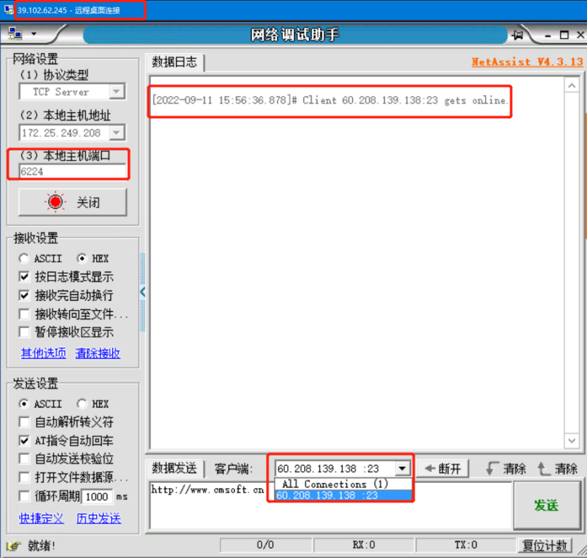的網絡助手進行測試,如下圖會顯示連接成功。