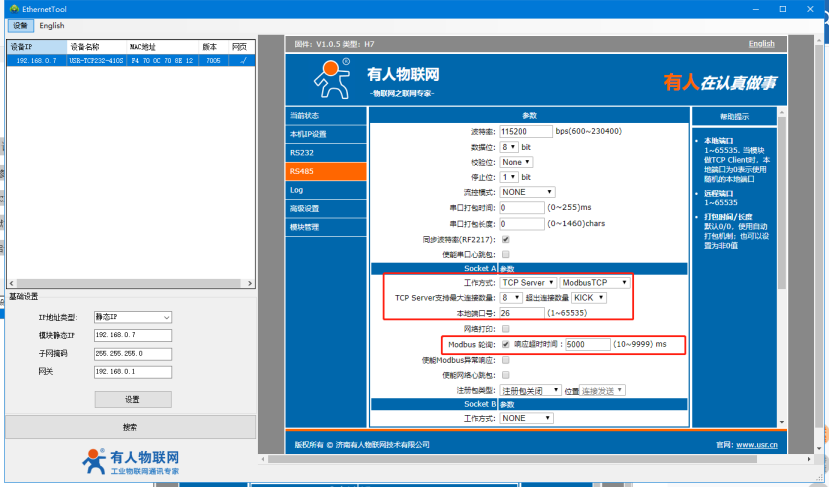 3.有人網絡調試助手 串口調試助手二合一 USR-TCP232-Test http://m.0575400.com/Download/27.html