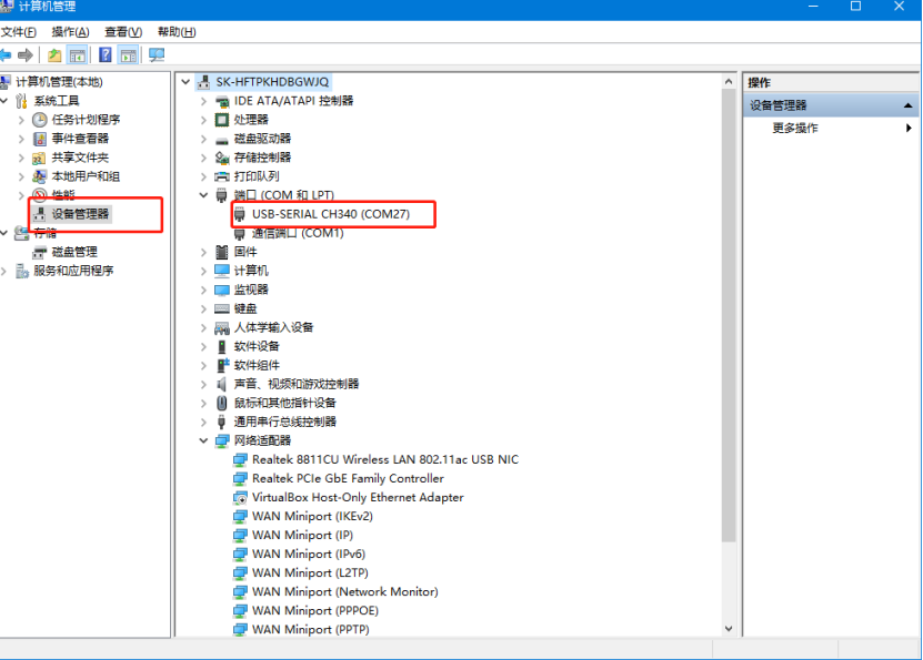 點擊電腦計算機,右擊鼠標,點擊設備管理器,查看端口,確認USB-RS485串口線的COM口號,有人測試電腦是com27