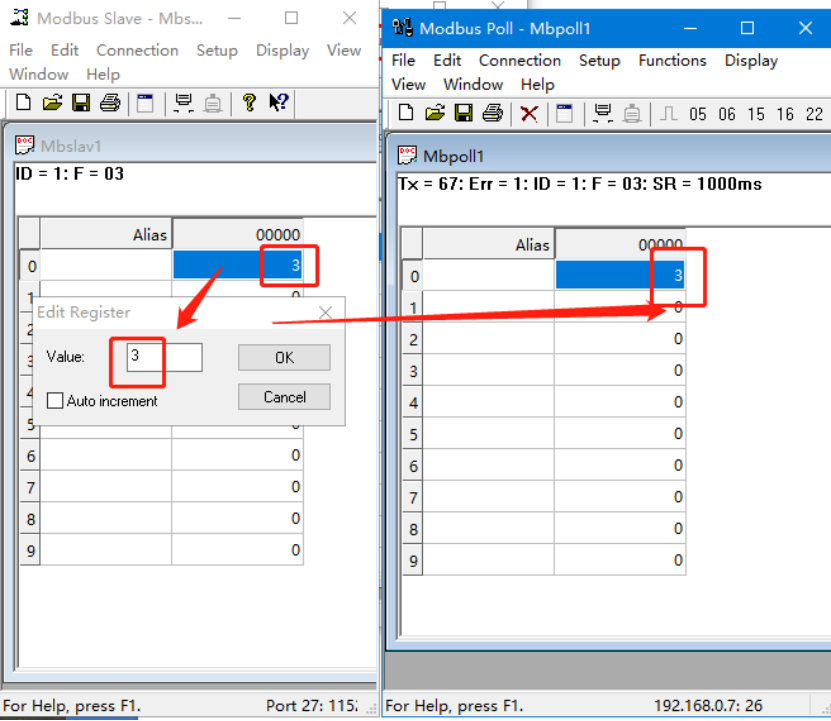 2、MODBUS SLAVE和MODBUS POLL軟件設置: