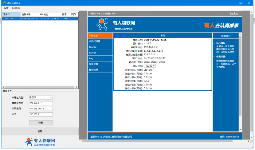 1.USR-TCP232-410s-H7 說明書http://m.0575400.com/Down/USR-TCP232-410s-H7-V1.0.1.pdf