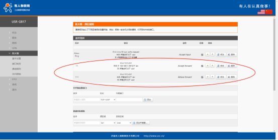 在目標(biāo)區(qū)域選擇 WAN,目標(biāo)地址填寫允許訪問(wèn)的 IP,動(dòng)作選擇“接受”設(shè)置完成后,點(diǎn)擊“應(yīng)用”。
