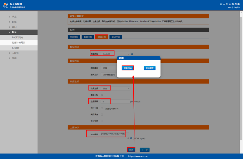 數據上報選擇“開啟”,上報周期:5s(自定義);