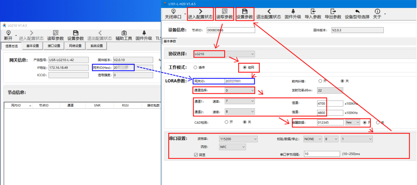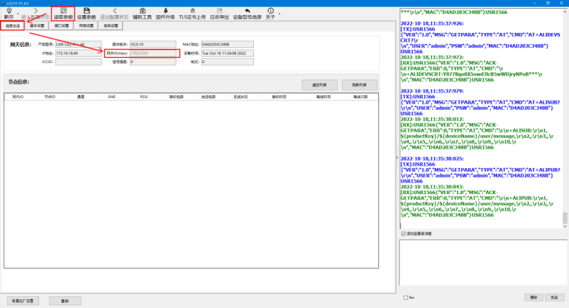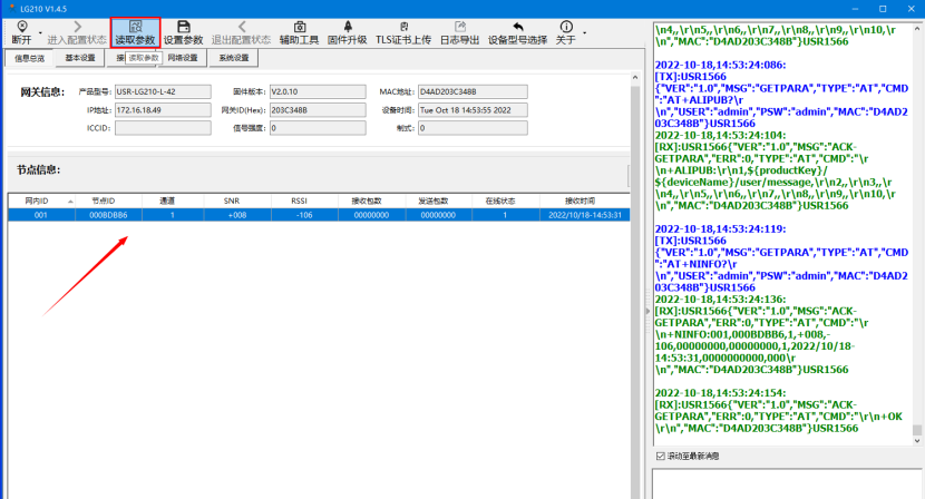 9、LG210重新獲取參數(shù),在節(jié)點信息中可以看到添加的L101已組網(wǎng)成功。
