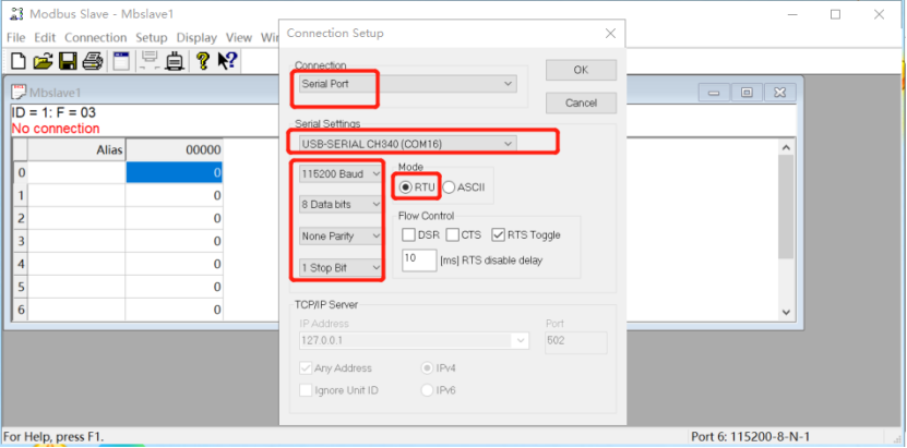 模擬測試用MODBUS SLAVE軟件做串口設備,用MODBUS POLL軟件做網絡端。