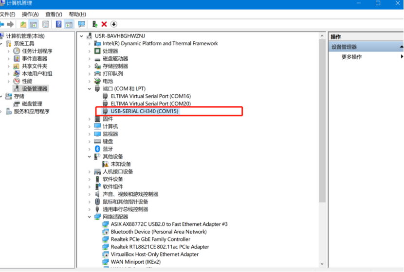 2、 檢查USR-RS485串口線的COM口號,點擊電腦計算機,右擊鼠標,點擊設備管理器,查看端口,確認USB-RS485串口線的COM口號,有人測試電腦是COM15。