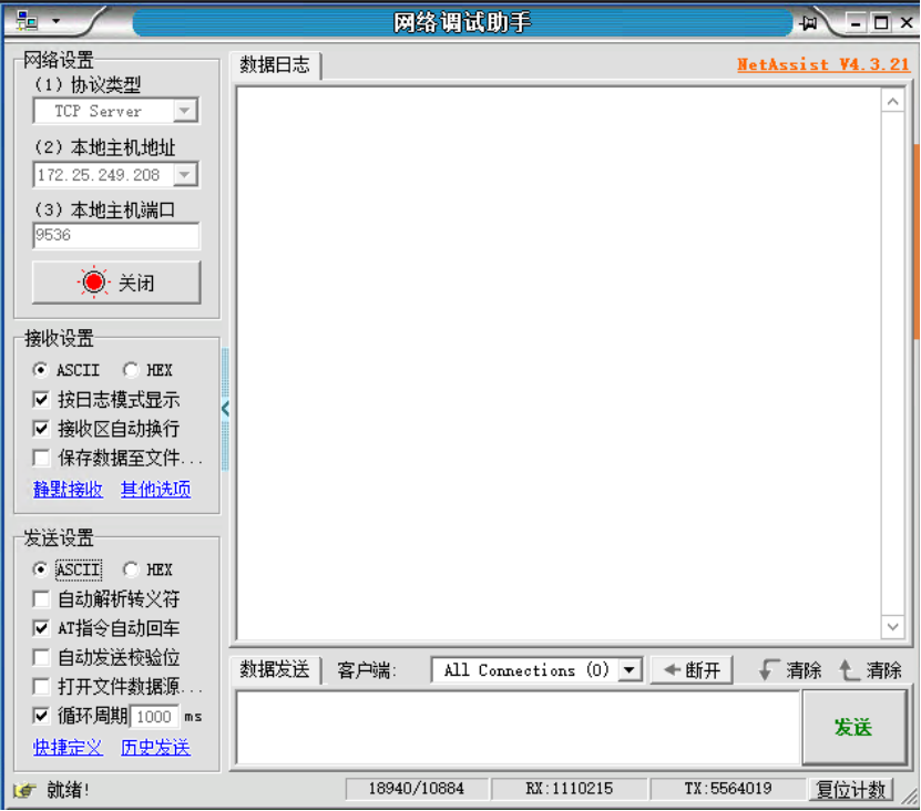 1.先在服務器端打開一個網絡調試助手,設置成TCP server及本地端口號,開始監聽。服務器ip需要是公網ip,局域網ip無法使用。