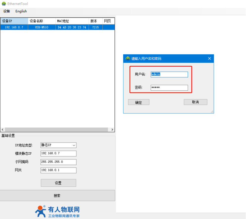 用H7系列配置軟件搜索N510設(shè)備,單擊搜索