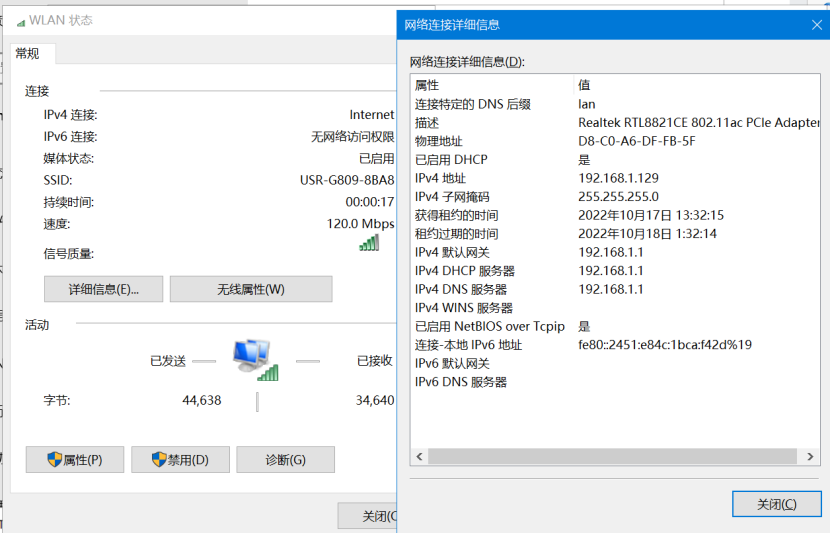 1、PC通過WIFI或者有線連接G809LAN口(G809WIF密碼m.0575400.com),電腦開啟DHCP,自動獲取IP,電腦會獲取到一個192.168.1.xx網段的IP地址.