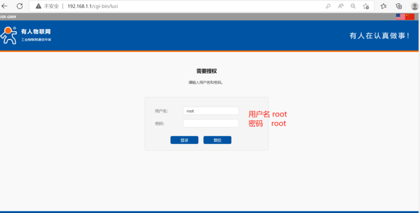 2、在瀏覽器上輸入192.168.1.1,用戶名和密碼都是root,登錄G809的內置網頁。