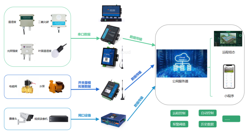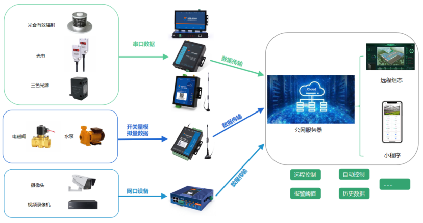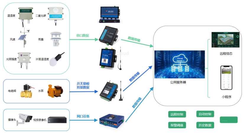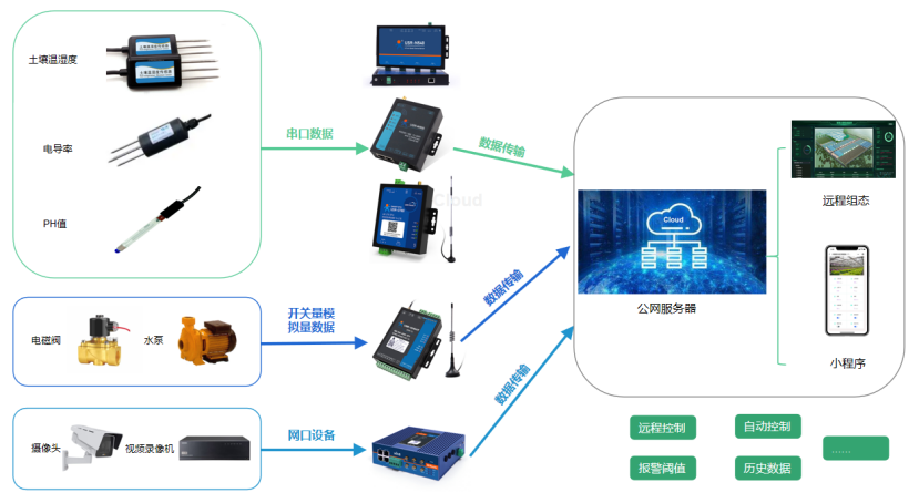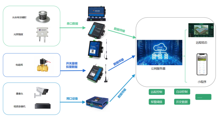 控制類:灌溉控制(水肥一體化),農業設施控制(溫室大棚調節)
