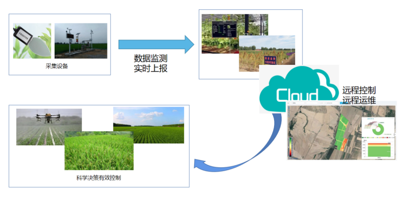 參數采集類:微氣候參數、土壤參數(墑情數據)、病蟲害數據(病蟲情)、農作物生長數據(苗情)、灌溉水質數據 ,空天地都可進行數據采集(衛星、無人機、傳感器等)