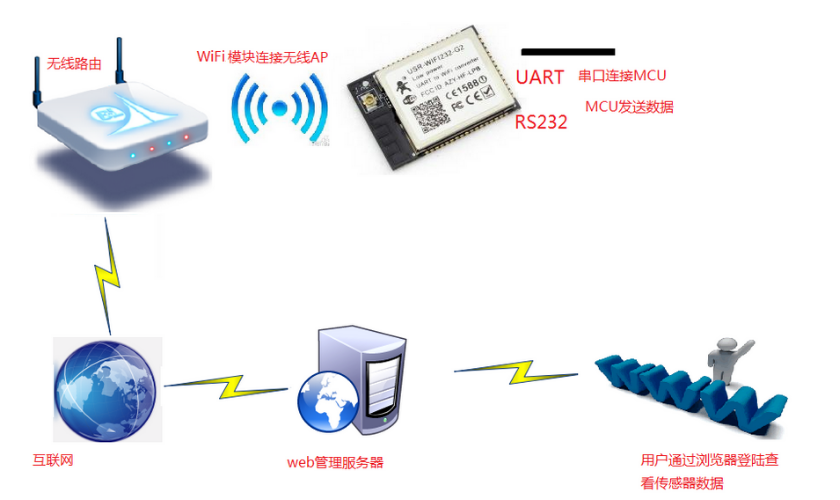解決問題:WiFi模塊一般透明傳輸數(shù)據(jù)是通過TCP 或者UDP 協(xié)議,以socket通訊的方式與服務(wù)器建立鏈接,目前有許多控制和管理設(shè)備的方式不是通過SOCKET通訊,是通過web網(wǎng)頁管理和控制串口設(shè)備,只需要用戶可以上網(wǎng),通過瀏覽器即可控制和查詢串口設(shè)備的數(shù)據(jù)狀態(tài)等信息。