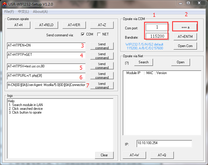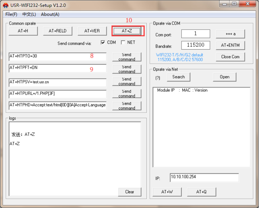 設(shè)置請(qǐng)求的HTTP服務(wù)器地址為m.0575400.com(域名),服務(wù)器端口號(hào)為80。指令為 AT+HTPSV=test.usr.cn,80