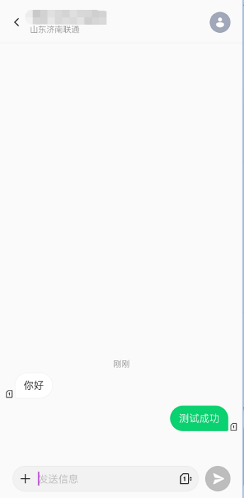3、這時,模塊可以與目標手機號所在手機進行短信通信。發送數據“你好”,我們可以看到目標手機號接收到了該數據。我們從目標手機號發送數據“測試成功”,可以看到在模塊的串口端接收到了該數據