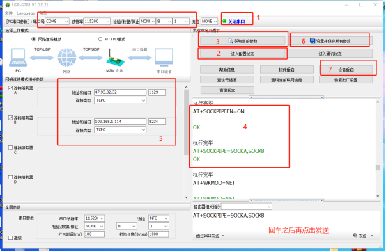 設(shè)置并保存所有參數(shù),設(shè)備重啟,待串口打印啟動(dòng)信息USR-G781,表示啟動(dòng)完成。