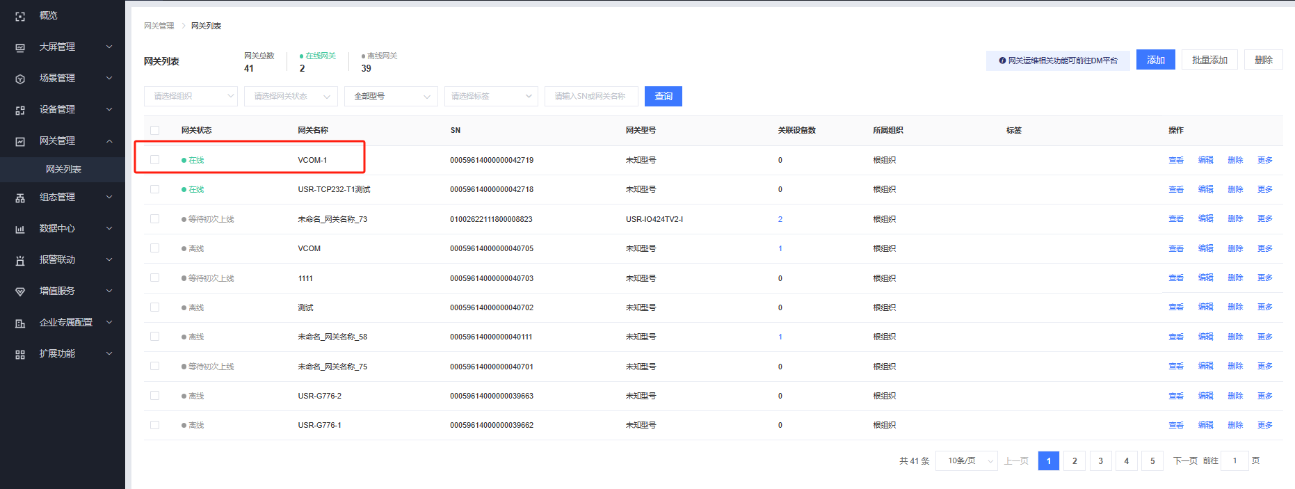 2.添加網關:網關管理--網關列表--添加
