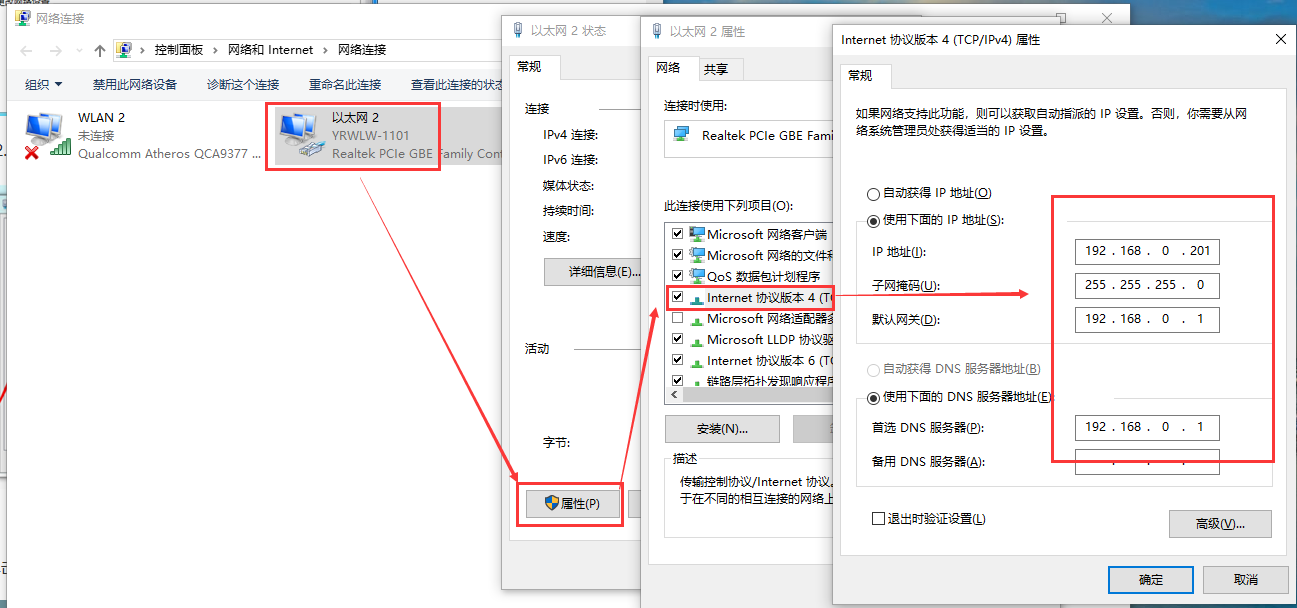 3.T1和電腦網口通過網線直連,電腦關閉防火墻,禁用其他的網卡,電腦設置成靜態IP和T1同網段,T1默認靜態IP:192.168.0.7