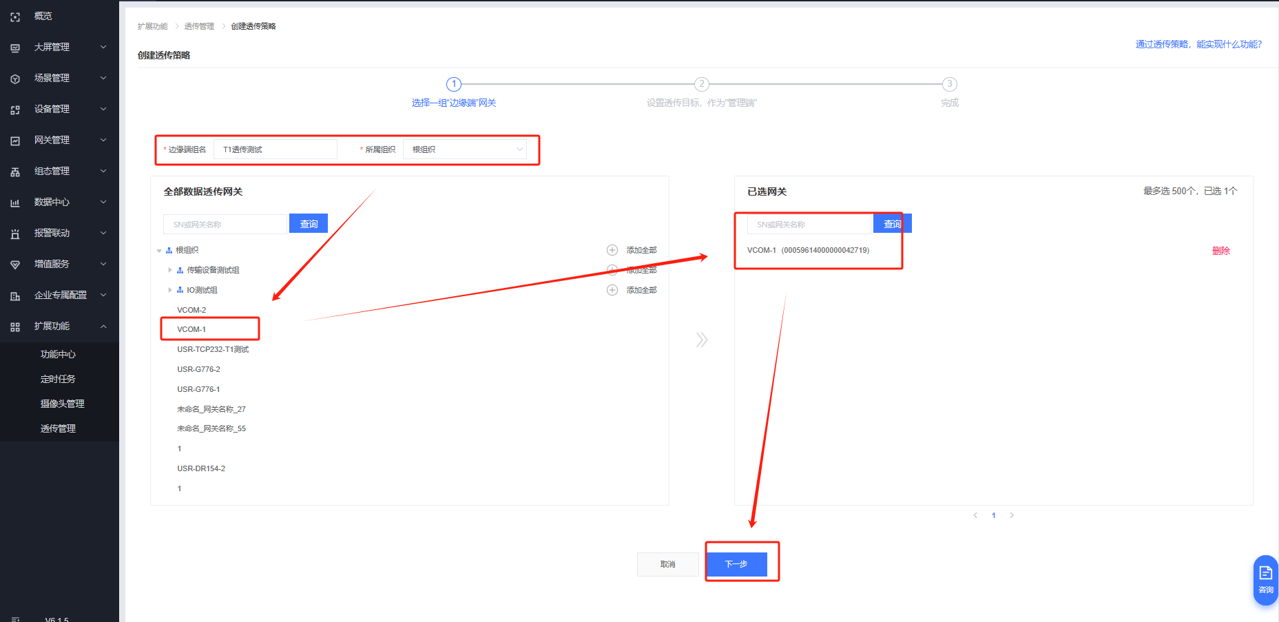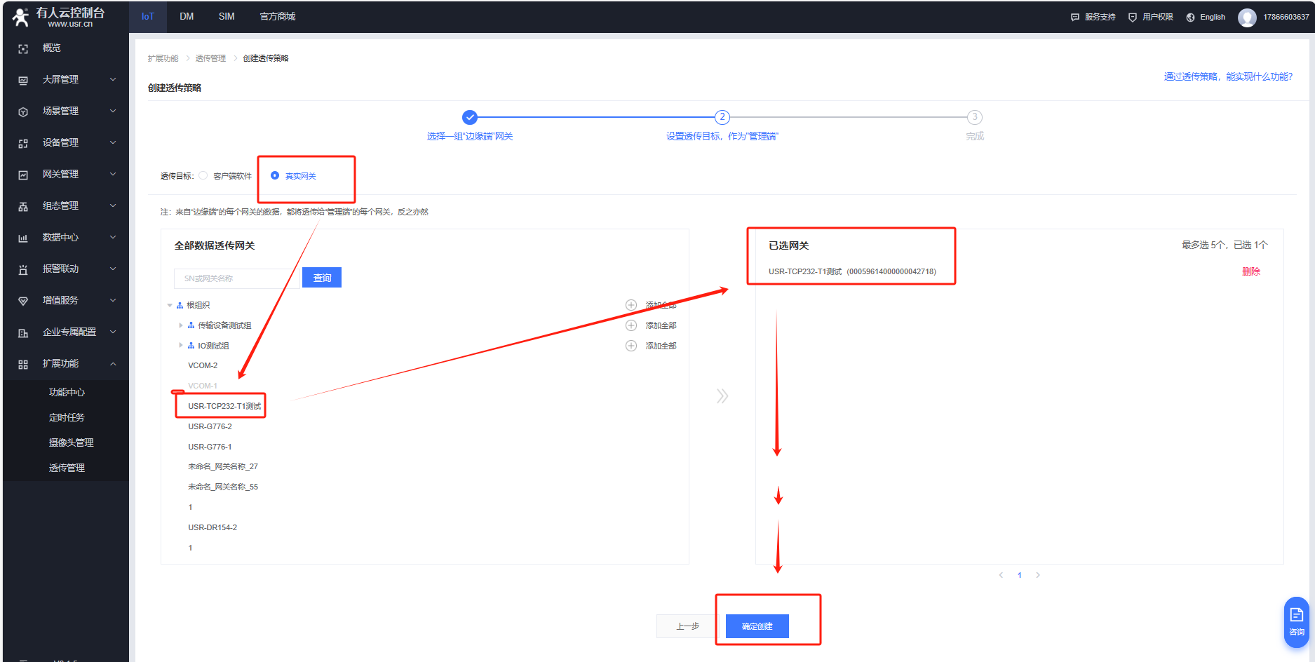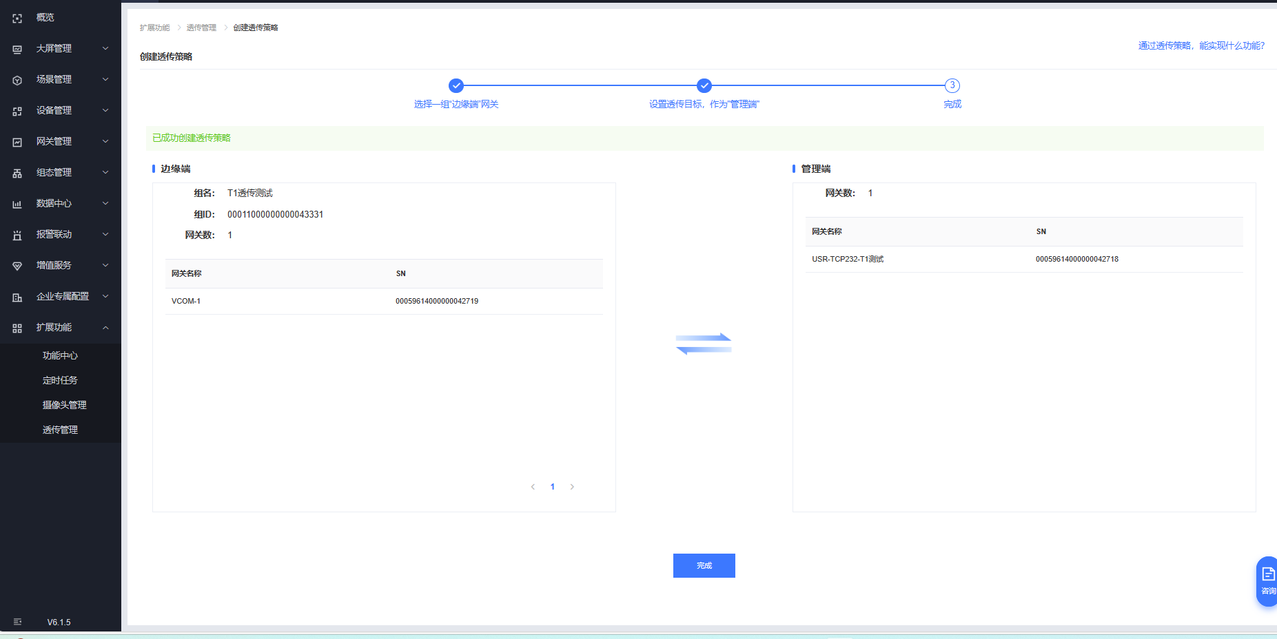 擴展功能---透傳管理---創建透傳策略