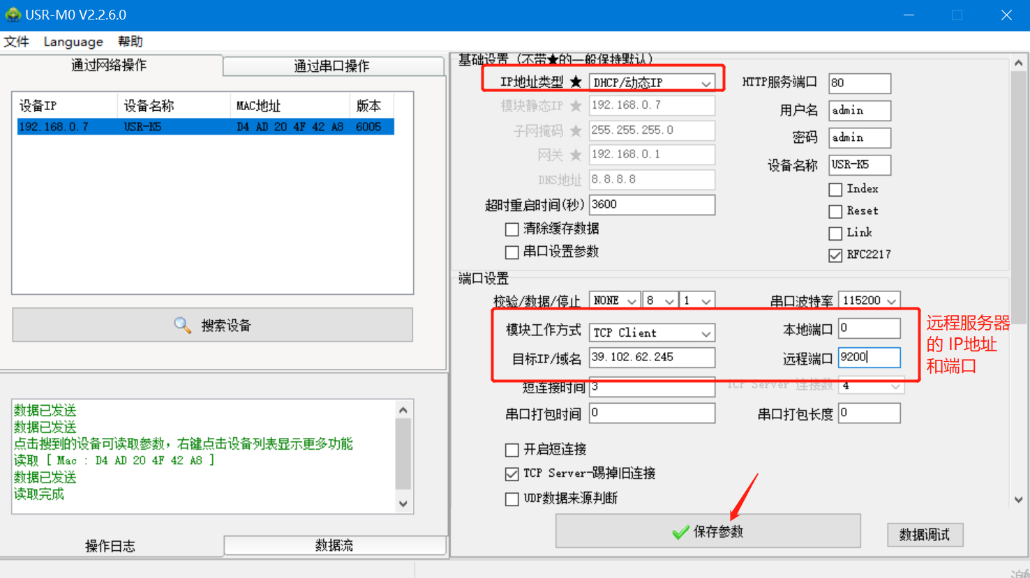 保存參數之后,接下來把K5模塊的網口接到可以上外網的交換機或者路由器上