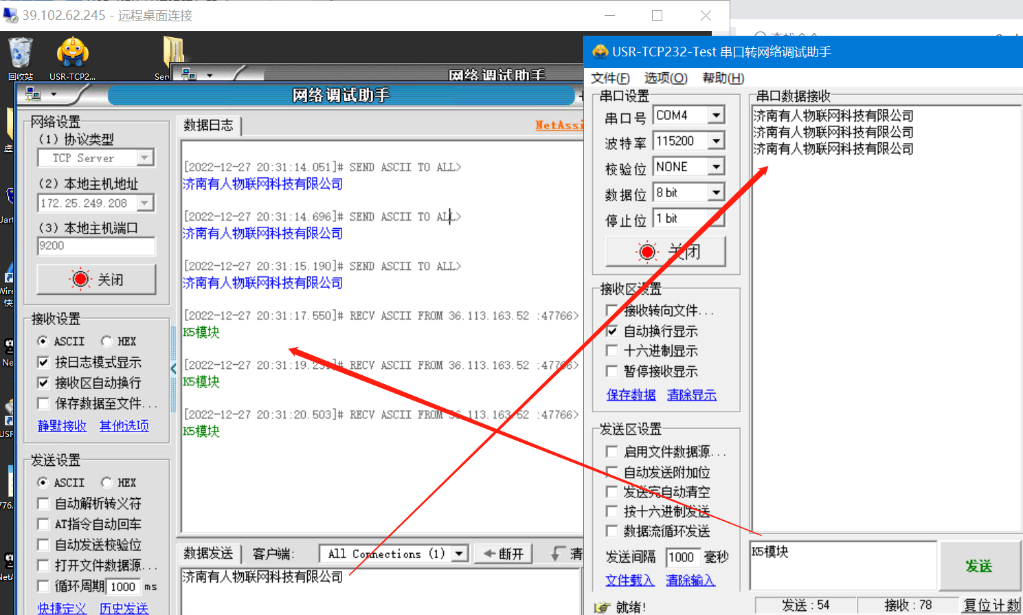將 K5(USR-TCP232-K5,簡稱 K5下同)安裝在USR-TCP232-EVB評估板(簡稱評估板)上,通過串口線(或USB 轉RS232串口線)將評估板RS232接口與計算機相連接,通過網線將 K5的網口 與PC 的網口相連接,檢測硬件連接無錯誤后,接入5V電源適配器,給評估板供電。觀察K5網口指示燈狀態是否正常:綠色燈常亮,黃色燈閃爍。