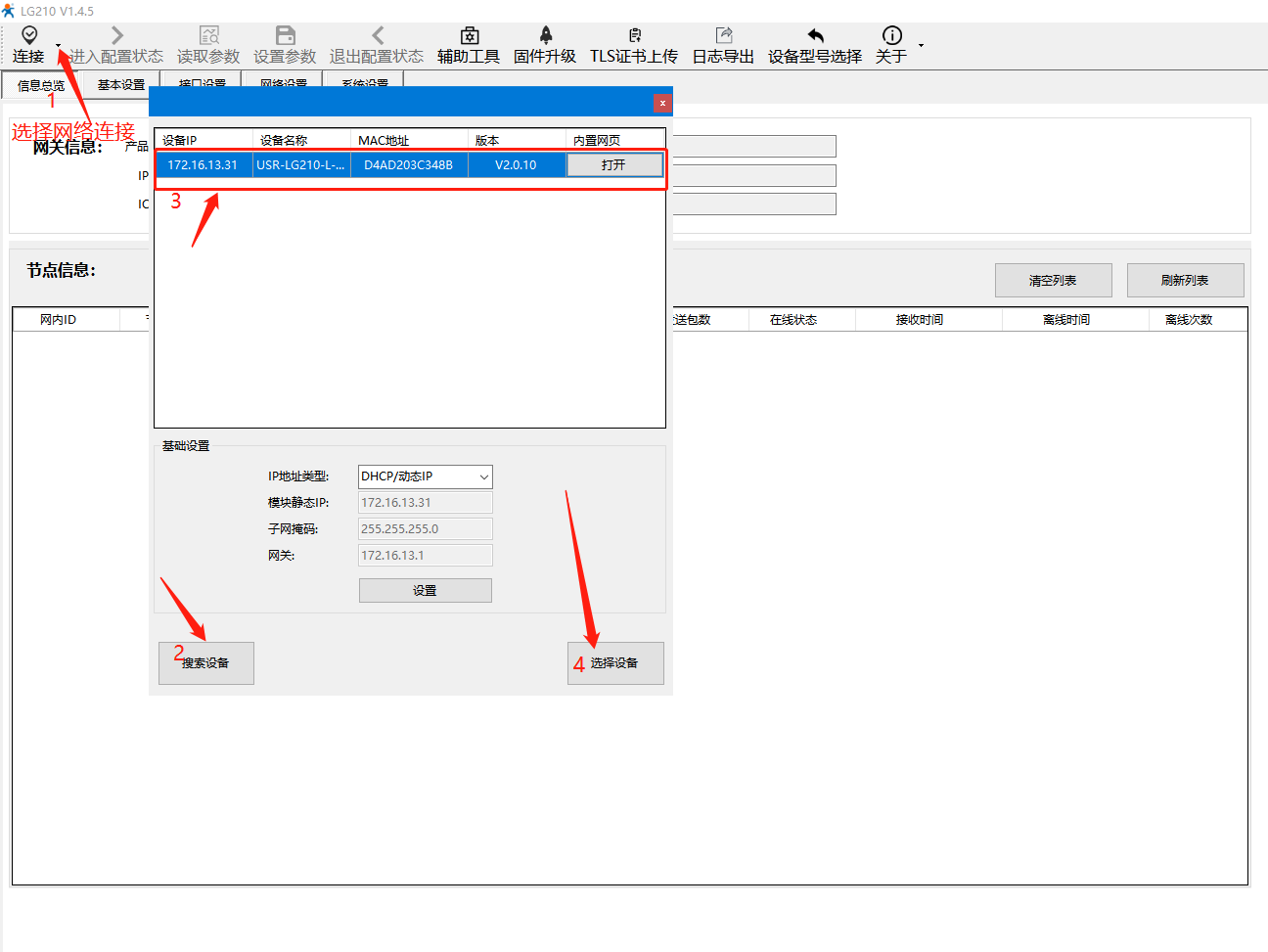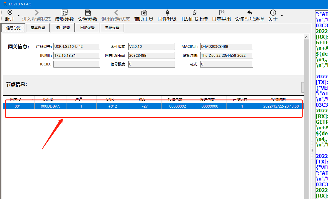8、LG210重新獲取參數,在節點信息中可以看到添加的LG206已組網成功。